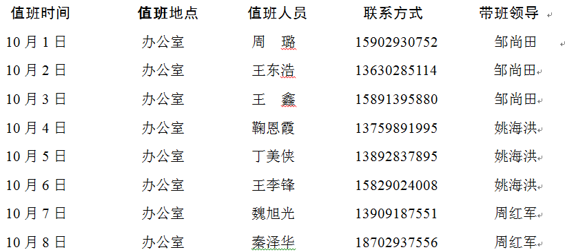数学与信息科学公司2017年国庆节、中秋节值班安排