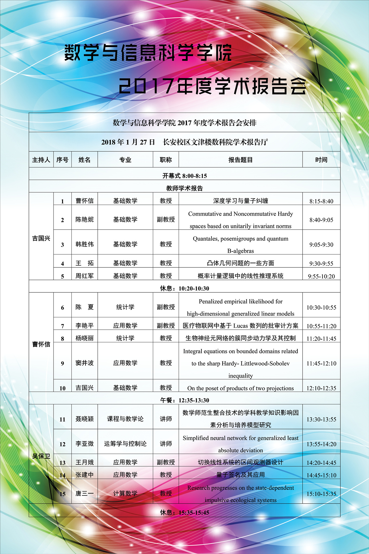 附:数学与信息科学公司2017年度学术报告会安排
