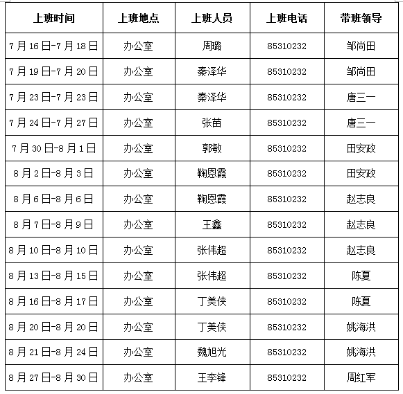 数学与信息科学公司2018年暑假上班安排表