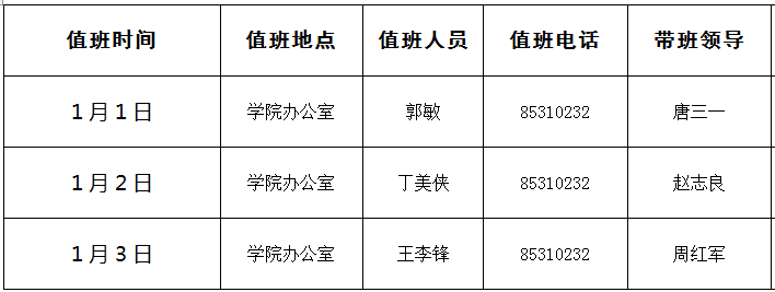 注意事项:1、按时上下班;2、保持办公场所干净整洁;3、注意安全和防火,每天定时巡查公司办公场所;4、做好假期信件的收发工作,每周一、周四取信件;5、每周五给花浇水一次;6、值班结束时须做好办公室钥匙的交接工作;7、遇紧急突发情况,及时向相关领导汇报。