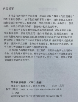 本教材是公司国家级一流本科课程《概率论与数理统计》的配套新形态教材。内容包括随机事件与概率、随机变 (向) 量及其分布、随机变量的数字特征、极限定理、样本与抽样分布、参数估计、假设检验、方差分析与回归分析、教育统计初步及应用等。