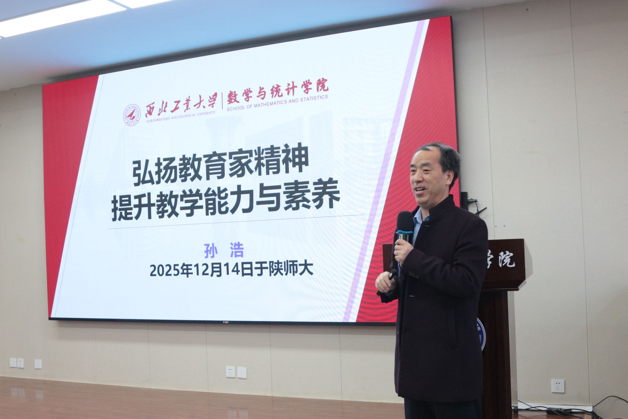 在专家主旨报告环节,孙浩教授围绕“提升教师教学能力与素养”,解读教育家精神时代内涵与教学强国建设实践路径。他以“概率论与数理统计”教学为例,分享长期师德修养与教学深耕的体悟。孙教授指出,教师要心怀“为党育人、为国育才”初心使命,坚守“躬耕教坛、强国有我”职业信念,砥砺奋进,承担教育重任,践行立德树人使命。