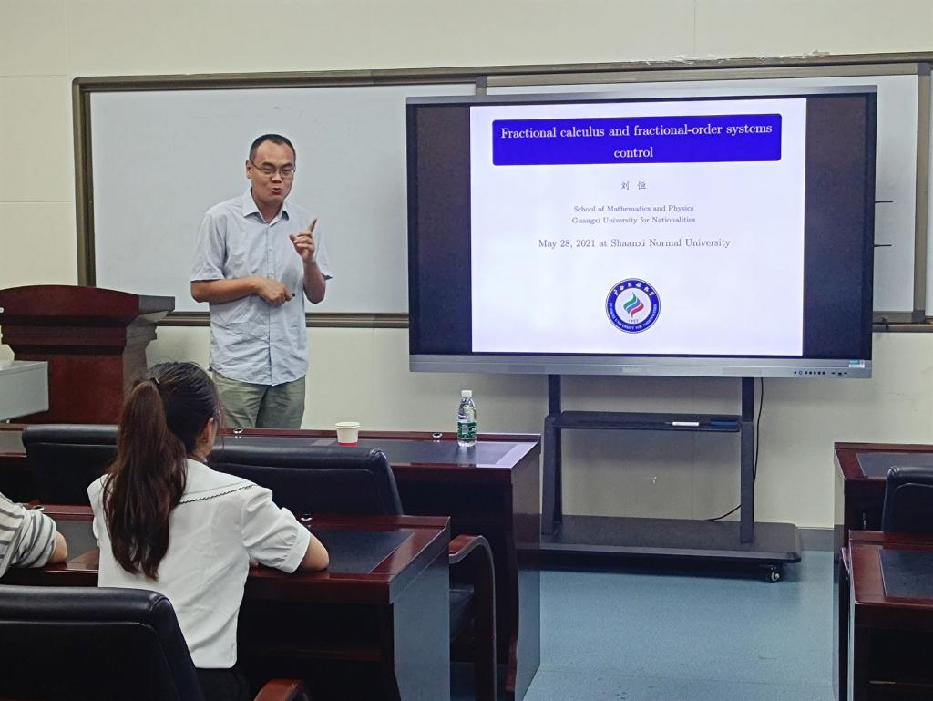 528日下午,应公司邀请,广西民族大学刘恒教授在公司学术交流厅为公司师生作了题为《分数阶系统的模糊控制思想和方法》的学术报告。报告由李生刚教授主持,公司教师杨海龙、贺鹏飞、魏宏智、体育公司教师朱文斐、西安理工大学教师张晓等,以及相关专业的数十名研究生和本科生聆听了此次报告。