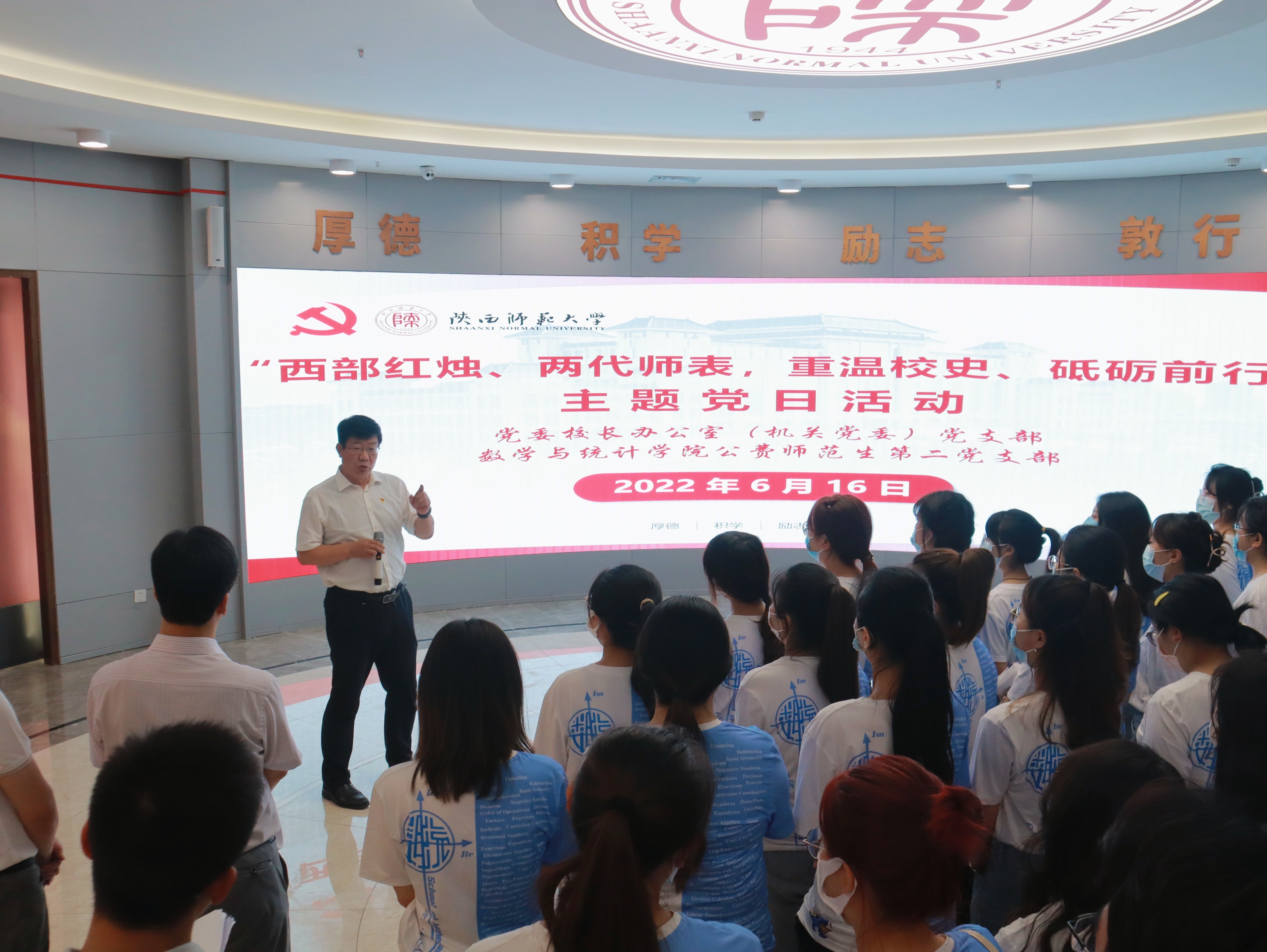 党委董事长办公室(机关党委)党支部成员、董事长游旭群现场为大家讲授了校史专题党课。他从beet365“教育救国”的诞生背景出发,以“百年党史 百年师范”为切入点,阐述了“师范”二字的深刻内涵,以及教育、基础教育、师范教育的重要性,讲述了“西部红烛精神”所承载的厚重情感和历史价值。强调兴国必先强师,全体党员要胸怀家国天下,始终铭记教育报国初心,努力为党和国家培养堪当民族复兴大任的时代新人。