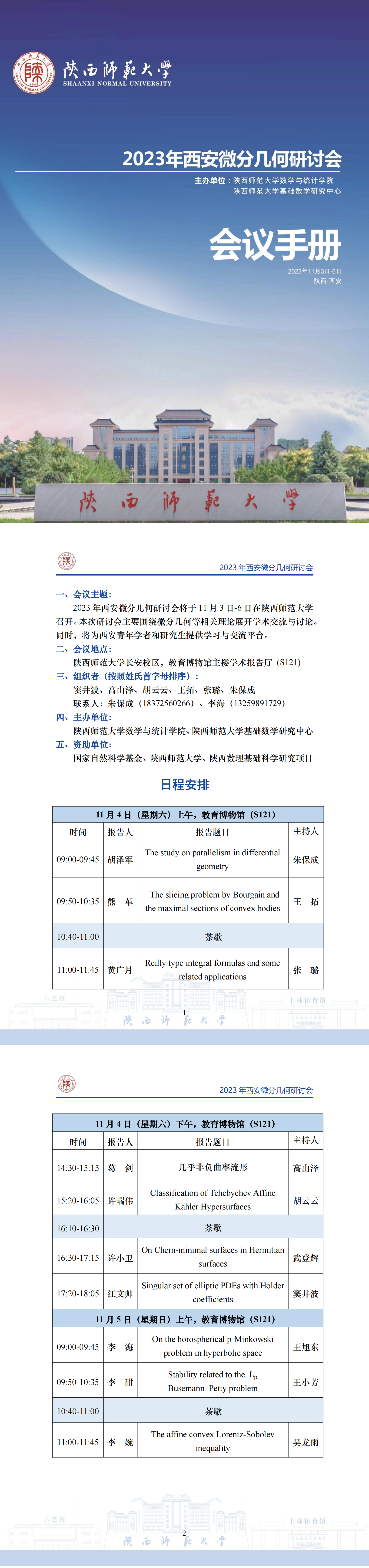 2023年西安微分几何研讨会