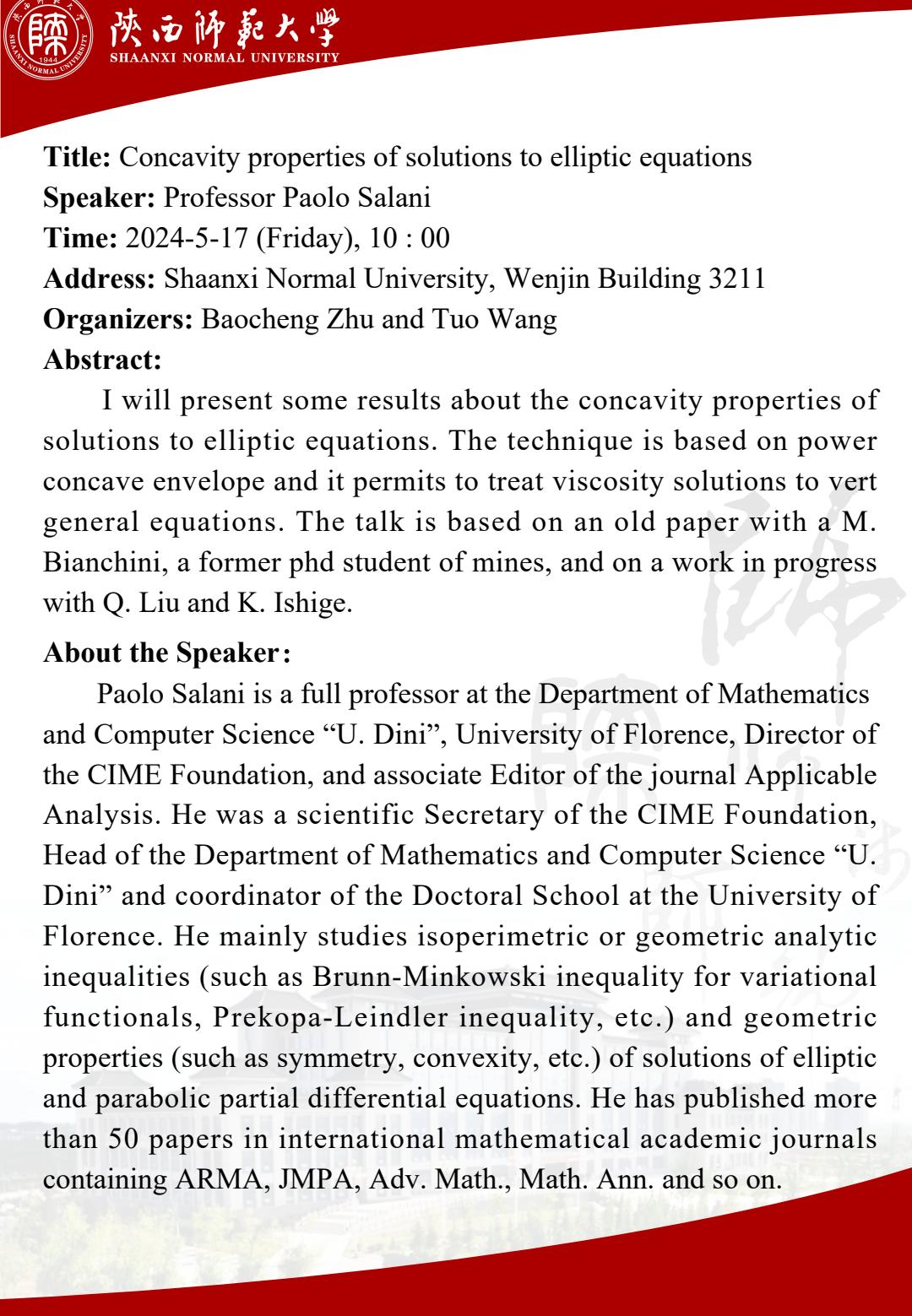八秩同辉校庆系列35 Concavity properties of solutions to elliptic equations