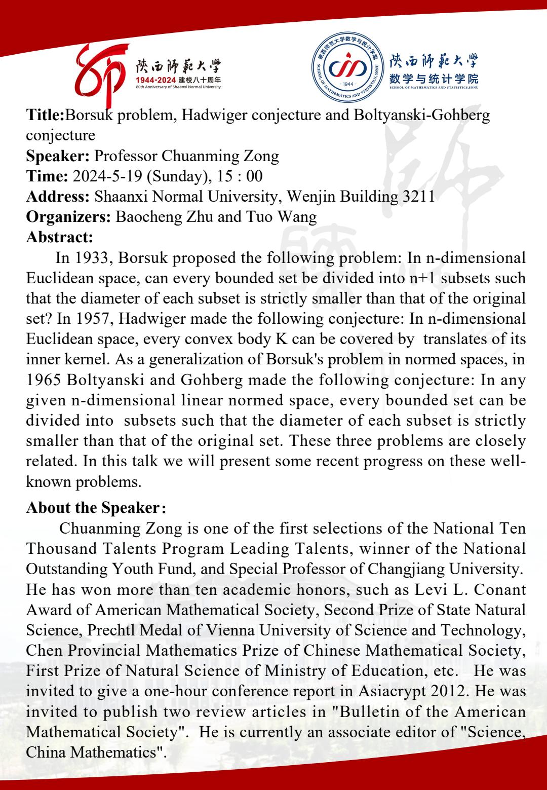 • 讲座日期: 2024-5-19(周日)