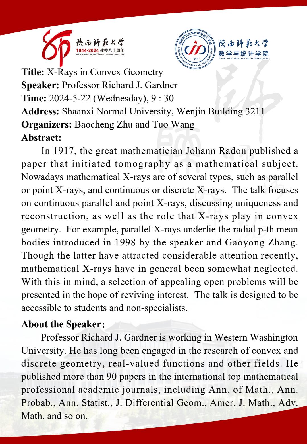• 讲座人: Richard J. Gardner教授