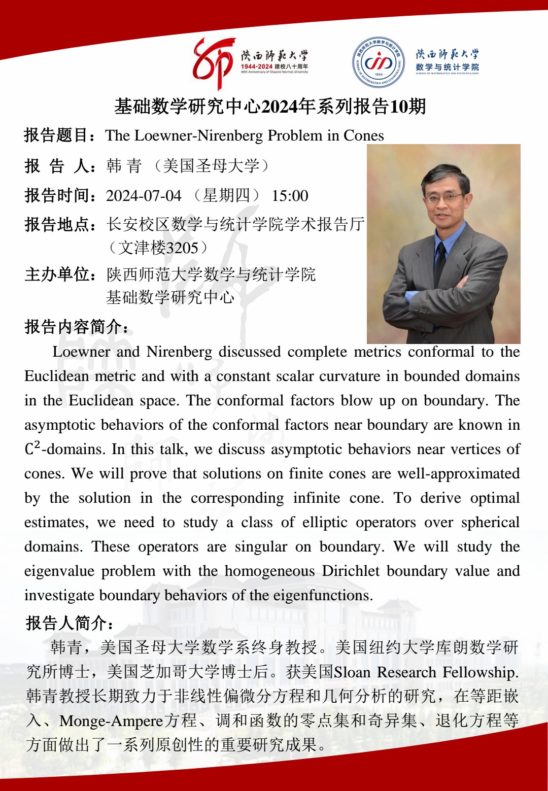• 讲座日期: 2024-7-4(周四)