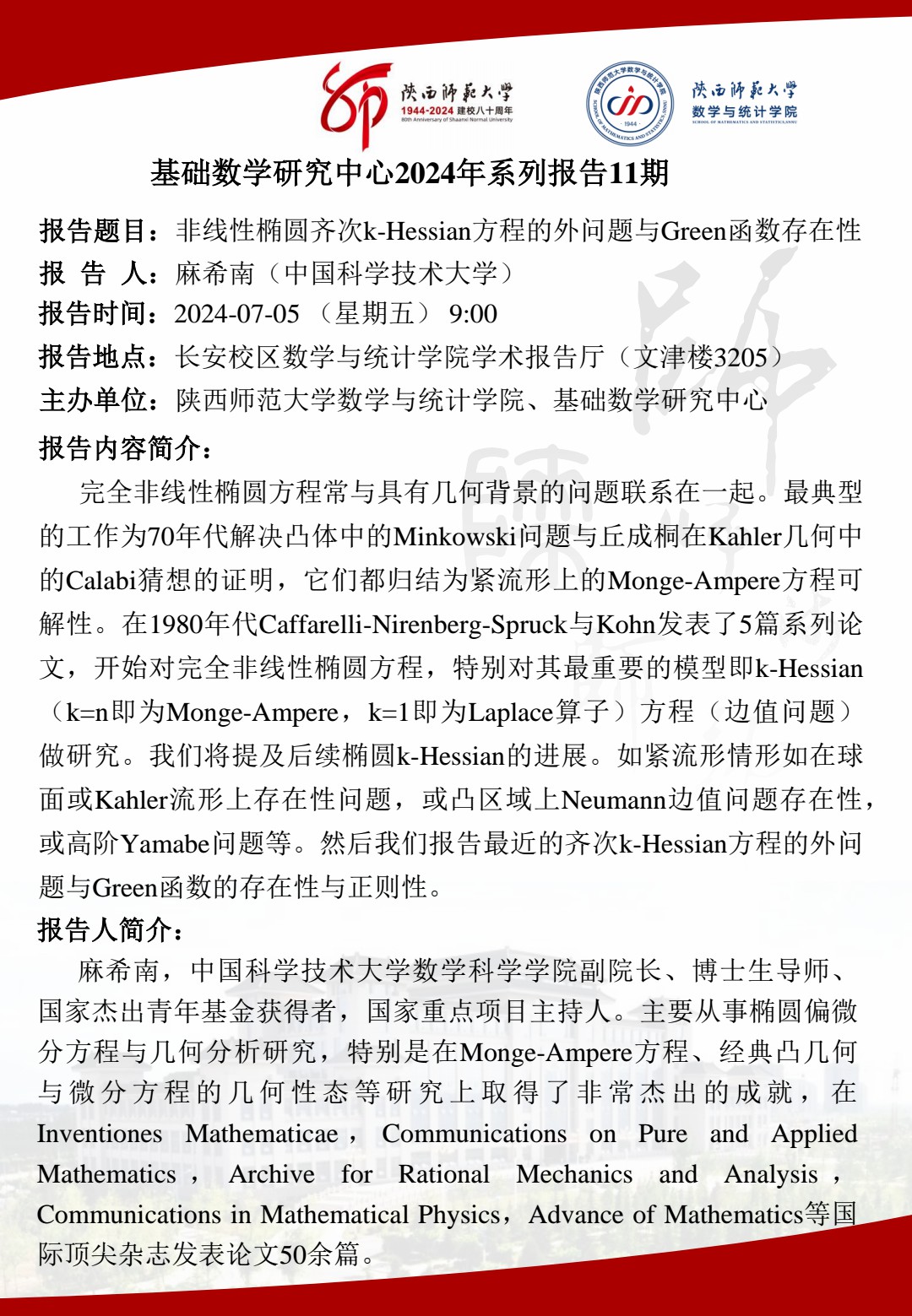 • 讲座日期: 2024-7-5(周五)