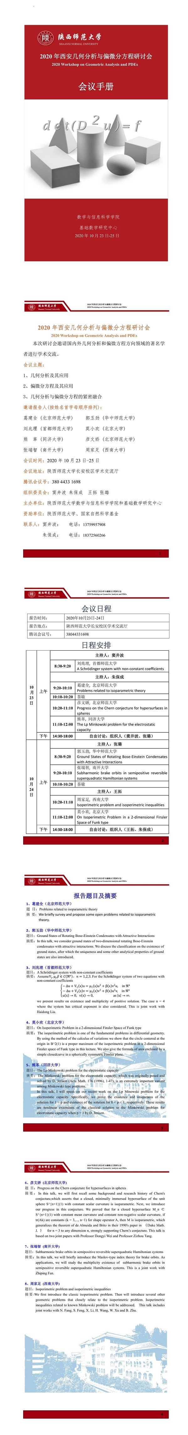 2020年西安几何分析与偏微分方程研讨会