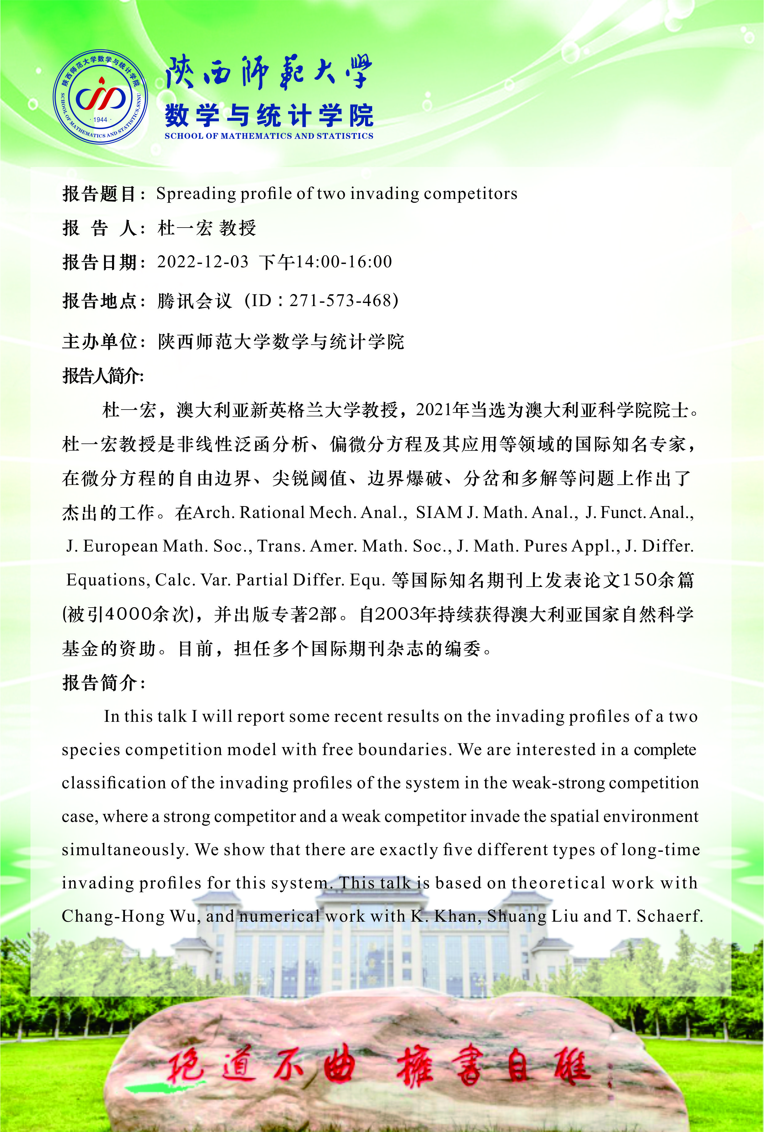 • 地点: 腾讯会议(ID:271-573-468)
