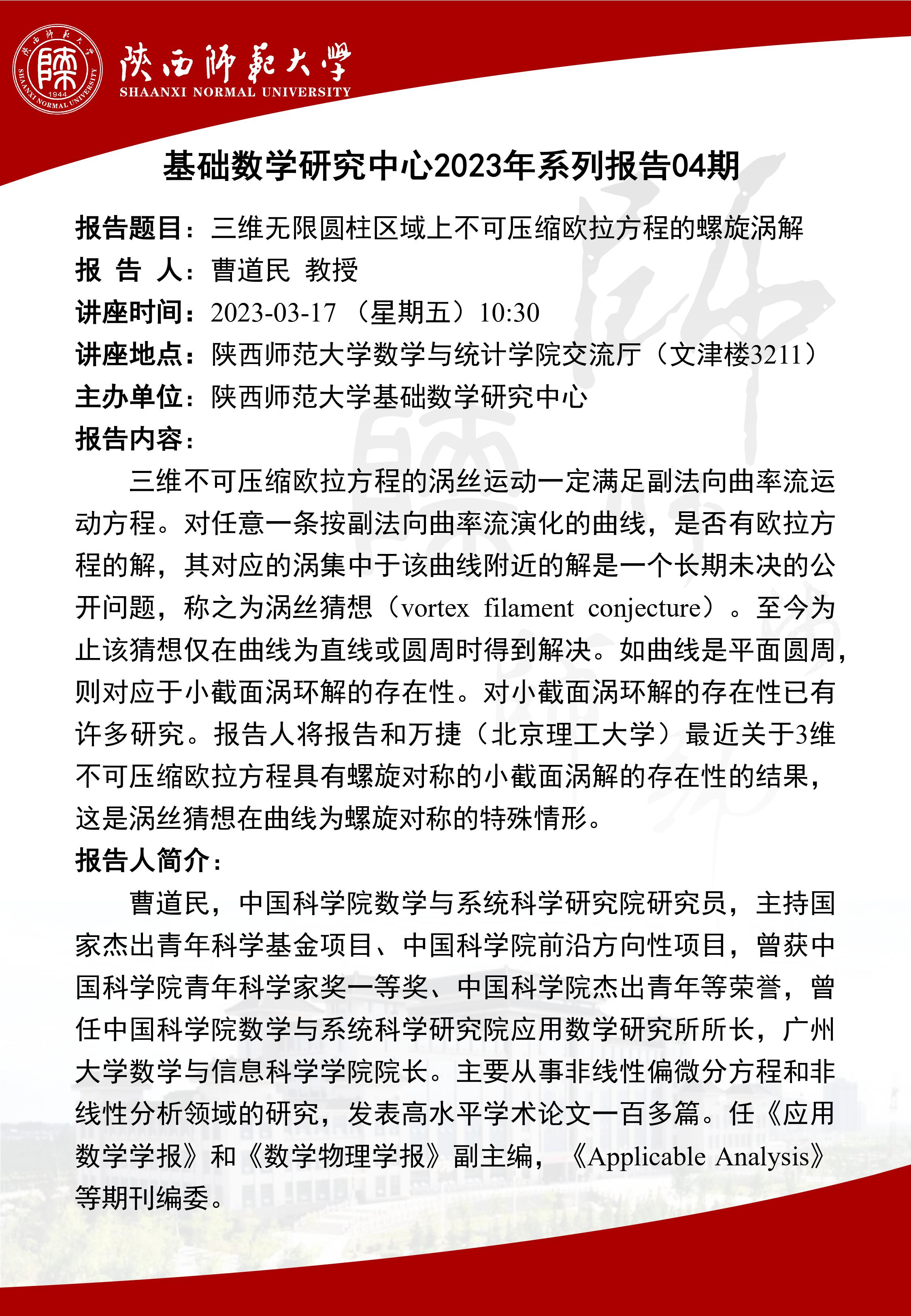• 讲座人: 曹道民 教授