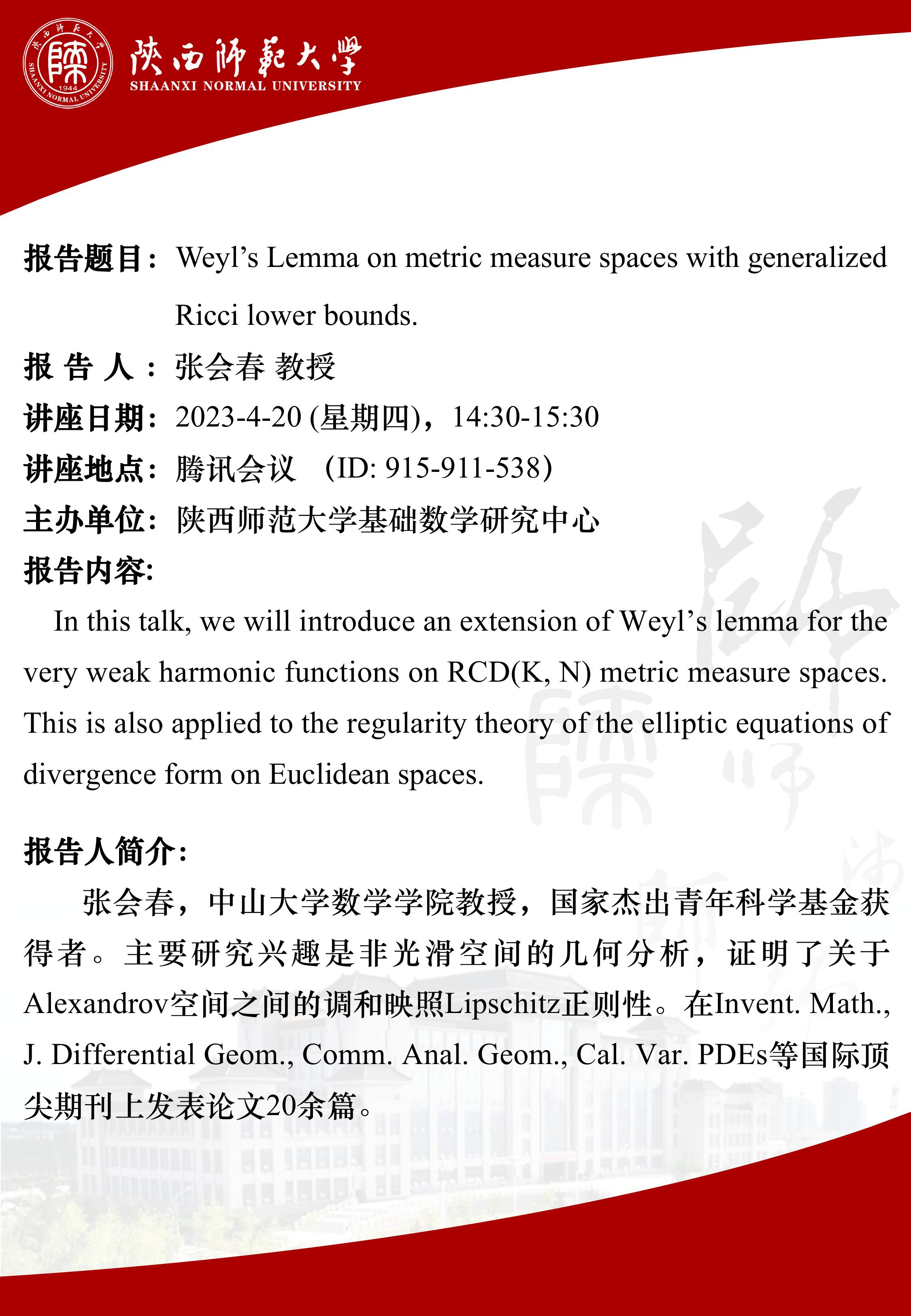 Weyl’s Lemma on metric measure spaces with generalized Ricci lower bounds.
