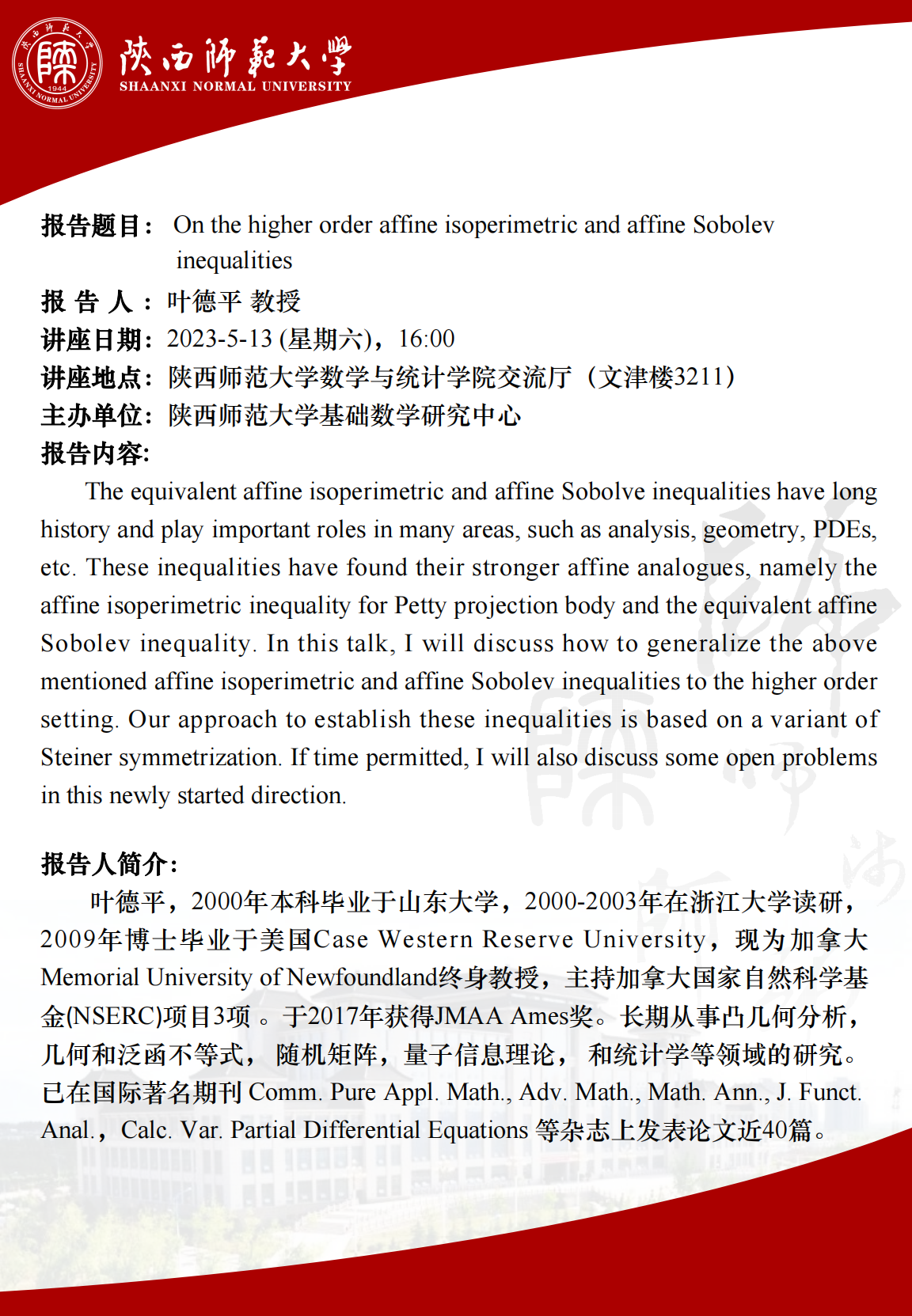 • 讲座日期: 2023-5-13