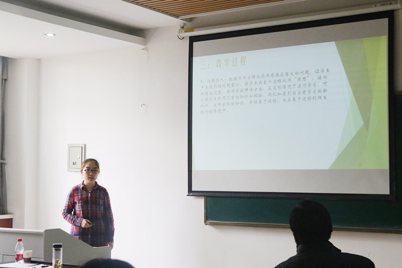 比赛主要考查员工对数学教育领域有关问题的理解把握和课堂教学技能的展示,内容包括说课比赛、讲课比赛和板书设计比赛。说课比赛主要从教师口语、教态、授课内容设计、重难点把握、教法学法等方面对选手进行综合考核。选手从高中数学课程中选择某一内容进行5分钟的说课,借助多媒体课件选手们通过准确精炼的语言表达,独特新颖的教学方法,向评委老师及其他同学们展示了过强的教学技能和教师风采;讲课比赛主要从讲课技巧、教态、语音语调、板书设计等方面对选手进行考核。选手从高中数学课程中选择某一内容进行15分钟的模拟授课,并同时使用多媒体课件和传统板书向评委老师及其他观摩同学们进行课程展示。选手们教态自然大方、讲述详略得当、多媒体应用恰到好处,充分展现了师范生的风采,得到了现场同学和评委老师的肯定。评委老师在选手们授课结束后进行了点评,在对每个参赛的选手予以肯定的基础上,提出了改进建议。