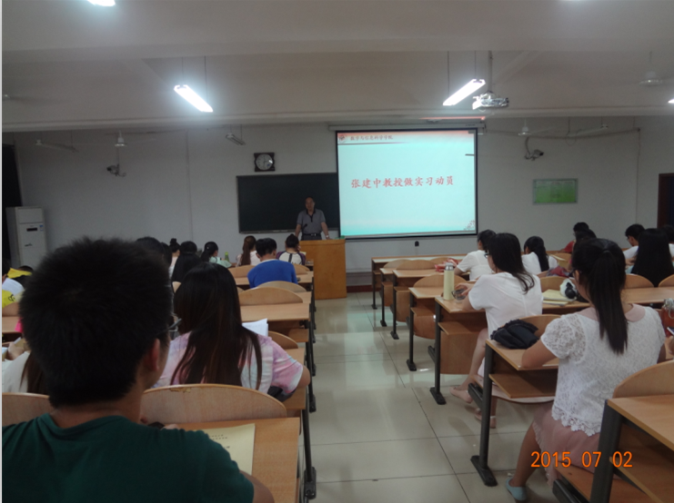 会上,张建中教授作了2012级非师范生实习动员讲话。他从实习的重要意义谈起,详细介绍了实习任务、时间安排、实习单位选择以及可能遇到的问题。同时,针对往届实习生的经历,提出了很多实用的建议,也特别指出同学们一定要注意安全。