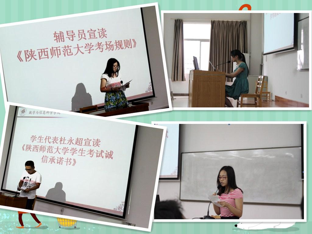 后,2012级辅导员鞠恩霞、2013级辅导员陈士宁分别宣读《beet365考场规则》,员工代表顾雪、杜永超分别带领2012级、2013级全体同学重温《beet365员工考试诚信承诺书》,号召同学们重视考风考纪,严肃考场纪律,树立诚信应考意识