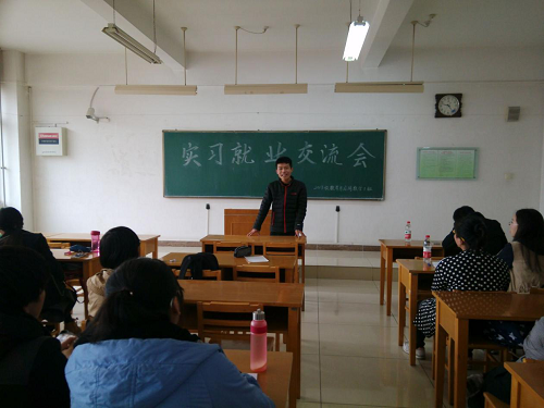 为了解决即将步入社会、踏上讲台的大三免费师范生对实习及就业择业的疑问,2013级数学与应用数学1班于316日下午在文津楼一段404教室举办了实习就业经验交流会2012级的曾祥福学长、刘文贵学长、白霞学姐、王亚茹学姐、衣军潼学姐、武亚茹学姐应邀出席了本次交流会,并结合自身经历作了发言,交流会由班长杜永超主持。