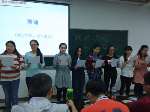 2013级数学一班“践行诚信 从我做起”主题班会成功举办