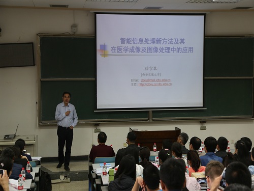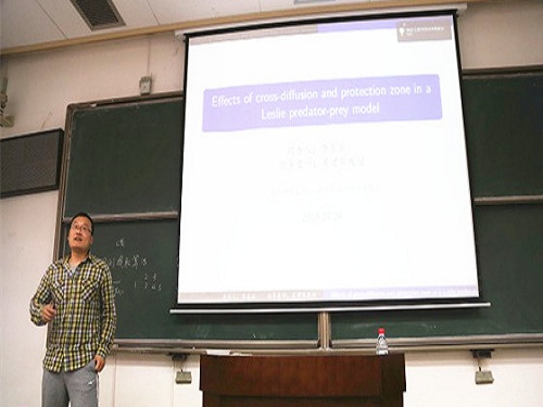论坛由西安交大beet365易媛教授主持。西安交大研究生院常务副经理吴宏春教授、beet365经理彭济根教授分别为此次论坛致辞简短的开幕式后,大家的掌声迎来了本次论坛的特邀嘉宾徐宗本院士的报告《智能信息处理新方法及其在医学成像及图像处理中的应用》。徐院士语言幽默风趣,讲解深入浅出、通俗易懂,公司参加报告的老师和同学受益匪浅。本次论坛共进行了8场学术报告,公司博士研究生李善兵就自己的研究成果作了报告,报告题目为Effects of cross-diffusion and protection zone in a Leslie predator-prey model,这些报告开拓了同学们的研究视野,增进了数学学科不同方向间的交流。在师生交流与提问环节中,师生们各抒己见,思想交锋。公司同学认真聆听并积极提问,与报告嘉宾热烈讨论。