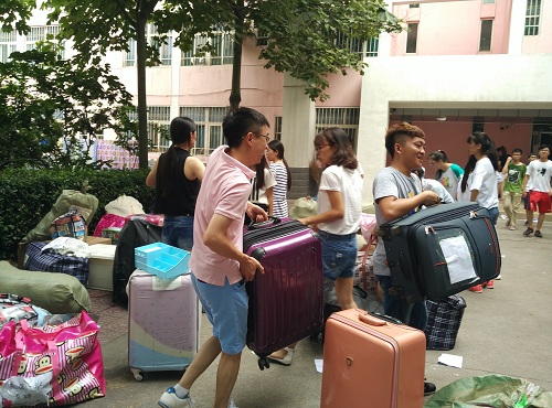 7月8日上午在辅导员、高年级志愿者的共同努力下,经过3个小时的辛勤工作,公司2015级305名员工顺利从雁塔校区搬迁至长安校区并顺利入住。