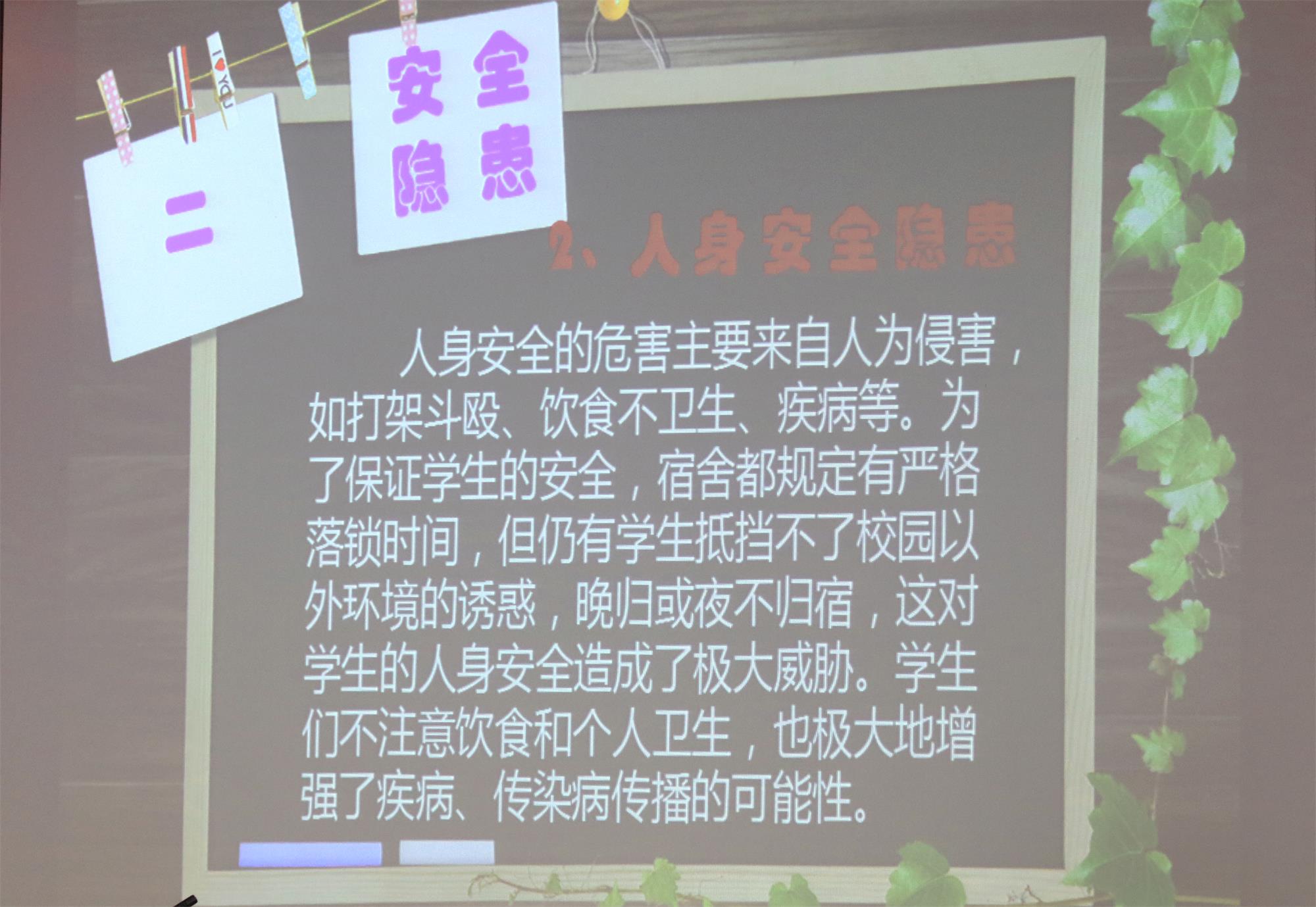 本次宿舍安全讲座旨在使同学们牢牢树立消防安全观念,保护人身和财产安全,杜绝日常生活中的危险隐患,使同学们认识到安全对于个人生活的重要意义。