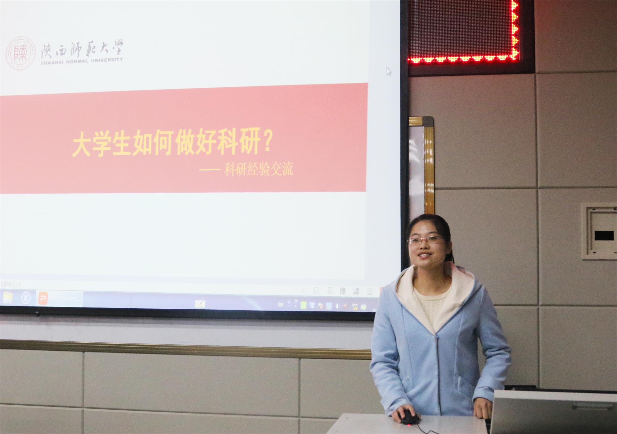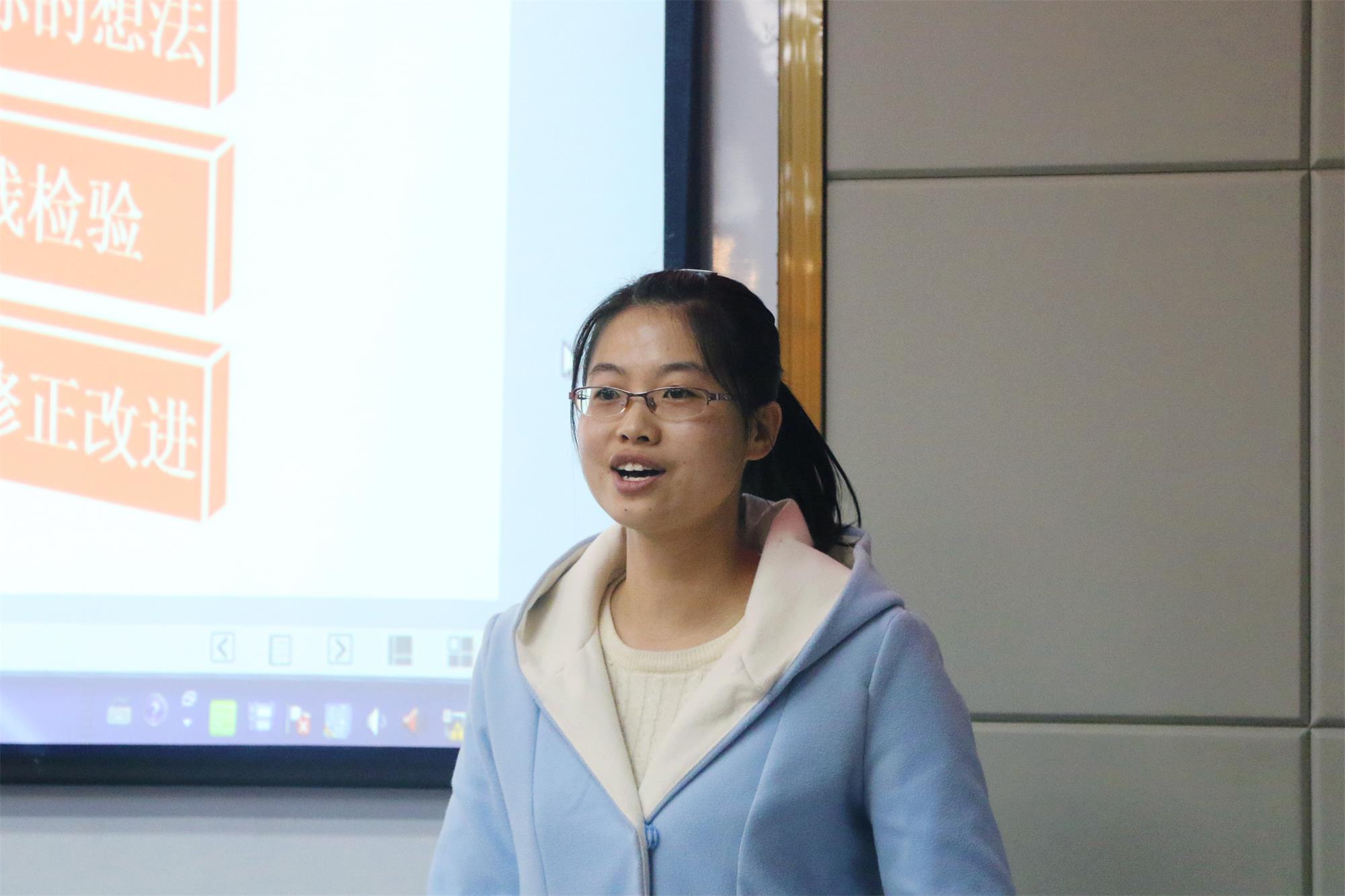 接着,李宁宁同学向同学们阐述了参与科研项目的意义,并鼓励同学们积极参与科研项目,达到提升自身深入研究的能力的目的。此外,她就科研项目的选题、组队以及选择指导教师三个方面,为同学们提供了参考与经验。