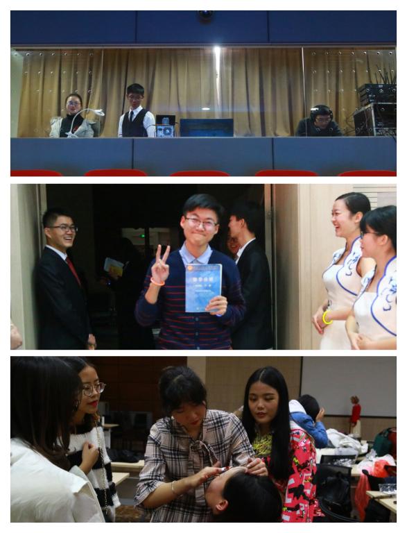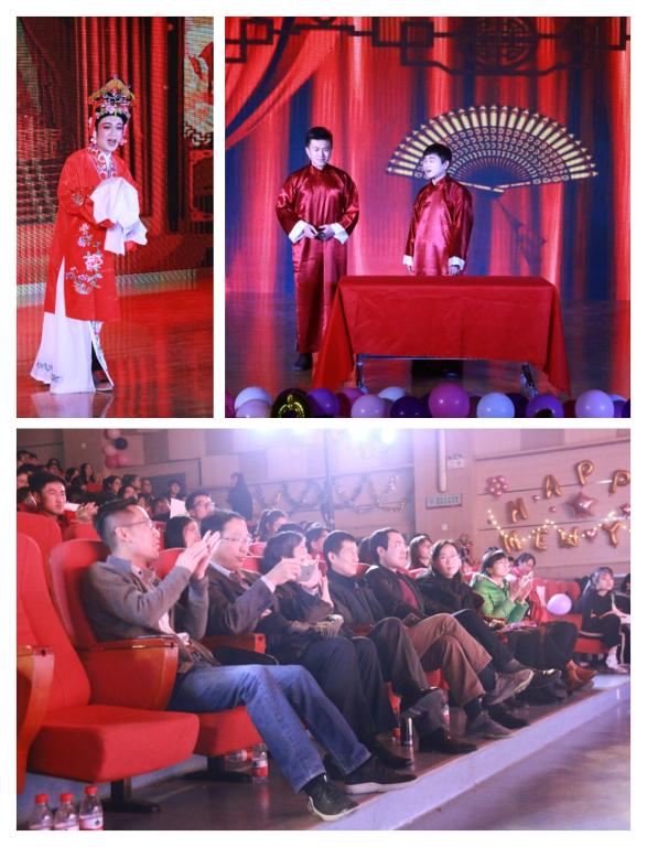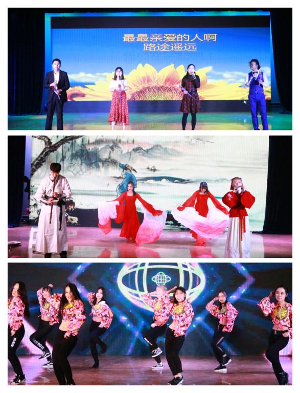 15、16级团支书以《梦在前方》发出不忘初心的坚定誓言。令全场观众开怀大笑的《新铡美案》把“善恶到头终有报,人间正道是沧桑”的真理打进观众心头,将晚会推向高潮。柔美梦幻的器乐表演《絮语轻丝》传递出浓厚的中华传统文化魅力,将观众带到如梦如幻的仙境中。由大四学长带来的相声《四级之路》为同学们敲响了警钟,学习应脚踏实地,切莫投机取巧。