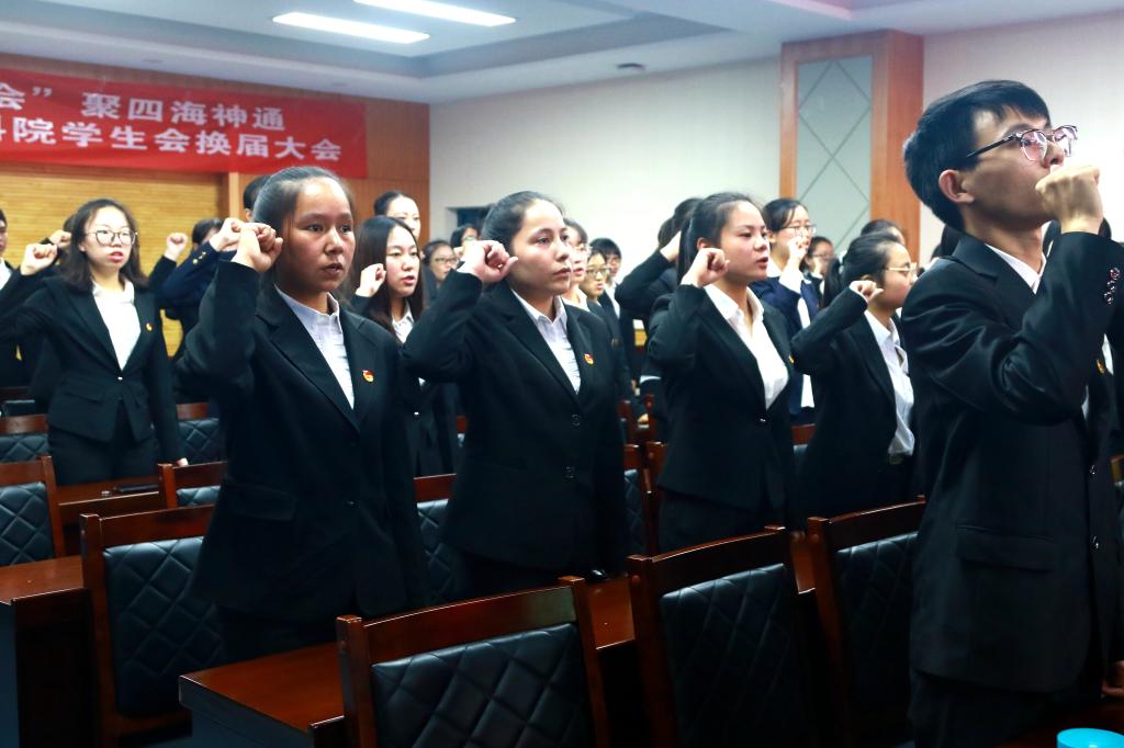 数科公司党委副书记邹尚田、团委书记王鑫、本科生辅导员鞠恩霞、张伟超、任灵以及白扬华出席了本次换届大会。数科院员工会主席团和新聘员工干部参加了会议。此次换届大会由17级本科生李鹏威和杜嘉灵主持。