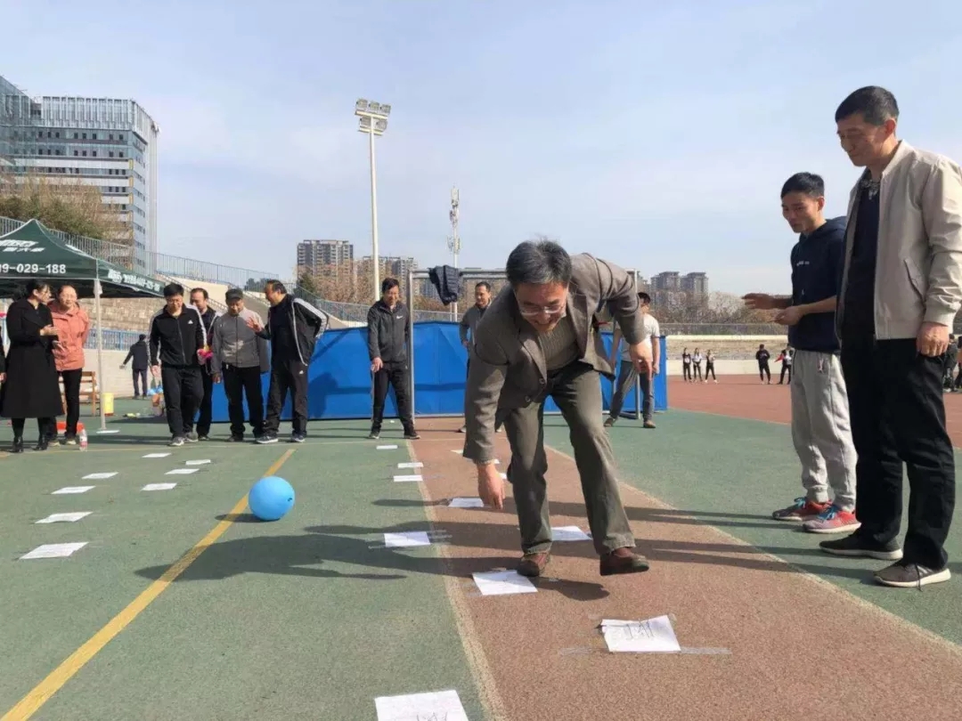 老师们也加入了比赛,展现出他们在赛场上的飒爽英姿。有的老师拿着气球,找好了出力点,敏捷地用头顶出,向终点跑去;有的老师手握特制的“旱冰球”,盯着终点线,只见“旱冰球”迅速从手中滑出,超出了重点线;有的老师现场组队,接力运送扑克牌上的面粉,不过面粉总会不经意地飞出,老师们要在云里雾里将扑克牌上的面粉安全送达,秘诀就是屏住呼吸,他们配合默契,动作敏捷;还有的老师身手灵活,手脚并用,快速地通过了“情同手足”这一关卡。