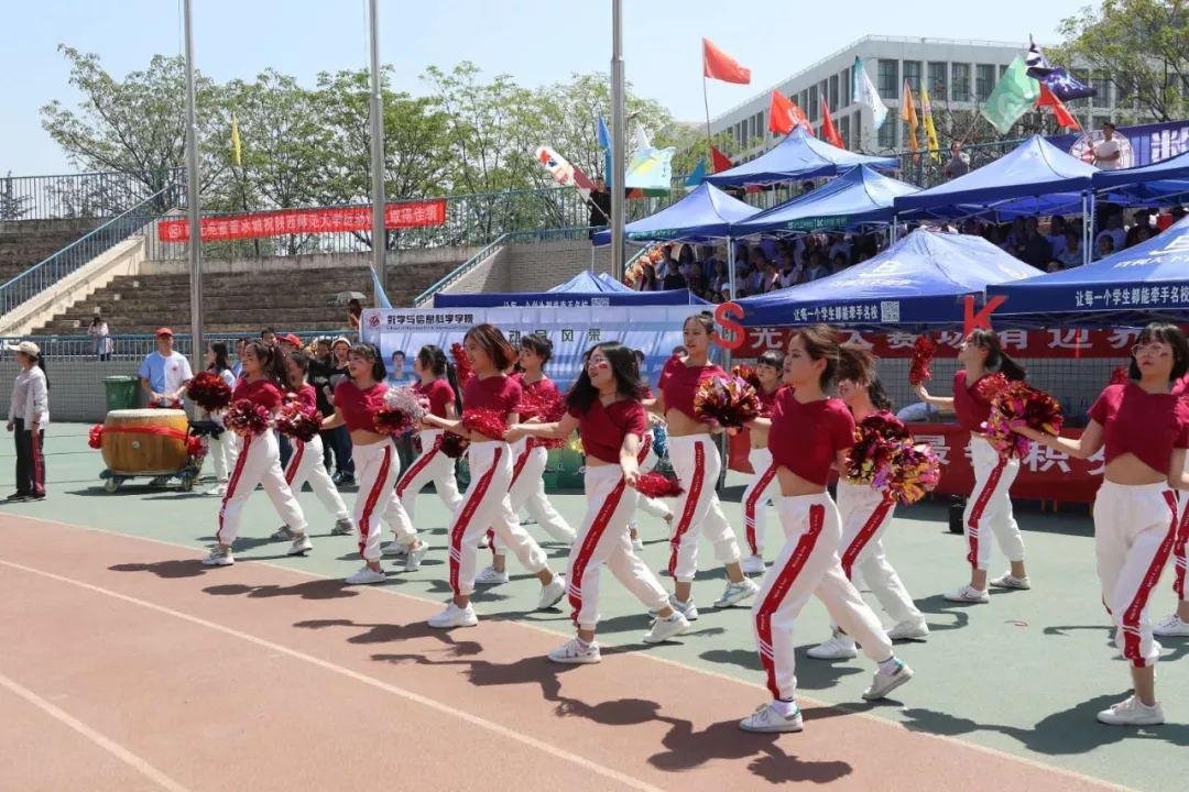 啦啦队表演精彩,师生高声呐喊,奋力助威。