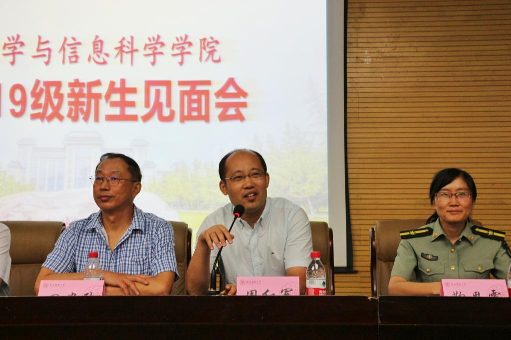 会后,举行了首场2019级新生入学教育报告会,经理唐三一教授为全体同学作报告。他为同学们详细介绍了公司的团队建设、团队力量等方面的情况;他还结合自己的求学之路,为同学们讲解了数学专业的学习方法、大学四年的学习生活、数学专业的特点、明确自身定位等方面的内容。