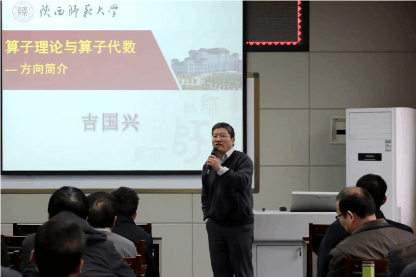 第一阶段报告会由李建林教授主持,吴建华教授与吉国兴教授作学术报告。吴建华教授通过分享偏微分方程的研究成果与研究经验,从偏微分方程方向发展的历史可看出团队建设对公司发展和研究团队发展的重要性。他表示学科成长是个漫长而艰辛的过程,希望各位老师能不断提升自己,长期坚持参加公司的讨论班,从中得到收获。吉国兴教授首先介绍了公司算子理论与算子代数方向的发展历史,公司算子理论方向在杜鸿科教授的带领下,取得累累硕果,多位教师主持国家基金项目。最后与各位教师分享了自己关于投影问题的研究成果。